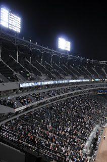 今次去看, 頭幾 round 都係好悶, 仲要越黎越凍 (我只係短打加件 Adidas 風褸). 好在之後主場夠膽死打個全疊打 Gran Slam (即係囉足四分) 仲要係咁放煙花, D 主場球迷顛晒咁又叫又跳. 仲要打打下停電廿分鐘. 唔知係咪見我悶, 整多 d 野比我睇等我開心下. 看來都好有趣. 攬球睇下有冇心情同價錢先去, 但係公牛的就算一百蚊美金都要去睇.
