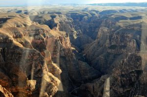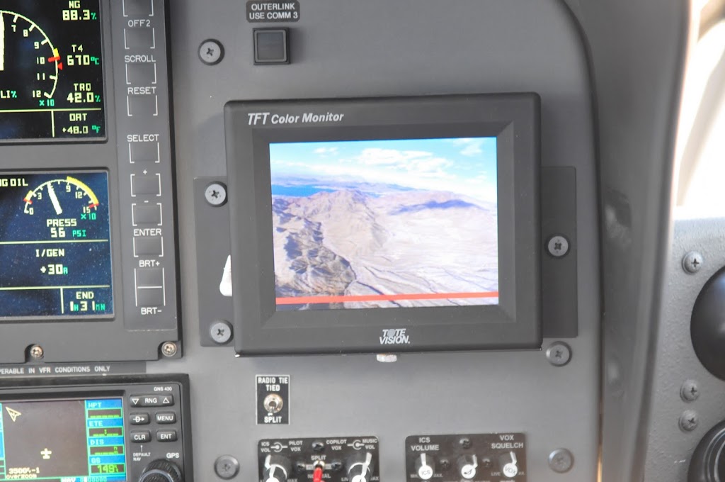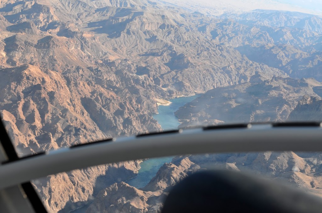 飛機首先向東飛飛飛, 在高空看下去的風景真係很偉大, 不久經過水霸和水力發電裝置 (當然不能和長江那個相比). 飛到咁上下去了一個加油站, 那裡有大約十部機係度等我地加油之後一齊再出發去大峽谷, 很莊觀的.